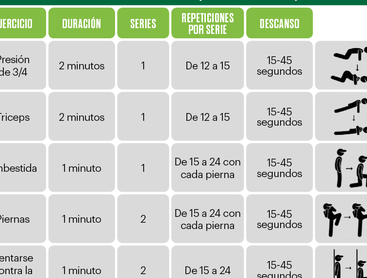 - Lunes: Entrenamiento de alta intensidad (HIIT)