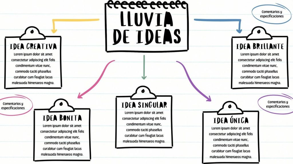3. Brainstorming: Realiza sesiones de brainstorming en las que puedas generar ideas rápidamente y sin filtros. Anota todas las ideas que se te ocurran, sin juzgar su viabilidad o relevancia en ese momento. Luego, selecciona las más prometedoras y úsalas como base para tu esquema.