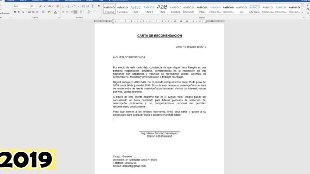 - Ejemplos de cartas de recomendación laboral bien redactadas